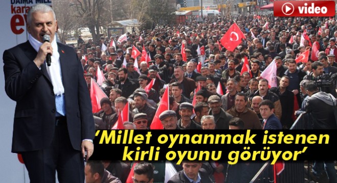 Avrupa’nın referandumdan hayır çıkması için var gücüyle çalıştığını belirten Başbakan Binali Yıldırım, “Bu millet oynanmak istenen kirli oyunu görüyor. Bunun cevabı 16 Nisan’da. Türkiye ’evet’le Avrupa’yı inletecek” dedi.
