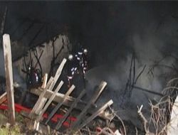 Soba patladı gecekondu yandı