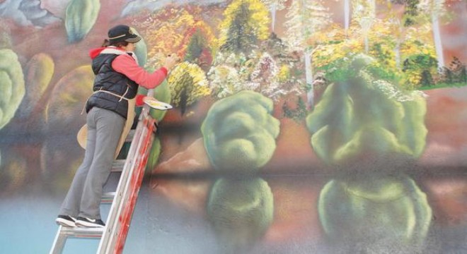 Yaklaşık 10 gün süren çalışma hakkında bil veren Ressam ve Grafiti Sanatçısı Sercan Özkan, “Yaptığımız resim hem boya kalitesi hem uzun gitme açısından çok farklı. Bu eserleri püskürtme yöntemiyle yapıyoruz. Dayanıklı oto boyaları kullanıyoruz” dedi. Resim öğretmeni Eda Tunaboyu da, yaklaşık 6 yıldır büyük duvar çalışmaları yaptığını belirtti.