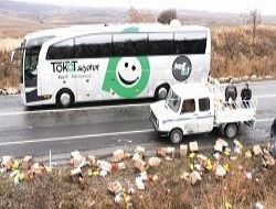 Tır sürücüsü Yavuz, Ankara’dan yola çıktığını, malzemelerin yola döküldüğünü arkadan gelen arkadaşının haber verdiğini söyledi.