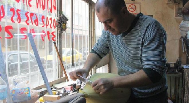 Sazlar genelde sipariş geliyor. Genelde dut, maun ve ardıç ağaçlarını kullanıyorum ama isteğe göre zeytin, paduk, vengi, çınar da kullanıyorum. Hepsi el işçiliği. Tekneye sap ve kapağını takıyorum. Tesviye edip, tellerini takıyorum. Sazda en önemli şey denge. Denge olmazsa ses çıkaran herhangi bir alet olur. Fabrika üretimi ucuza sazlar var dışarıda ama burada en düşüğü 600 liradan başlıyor.”