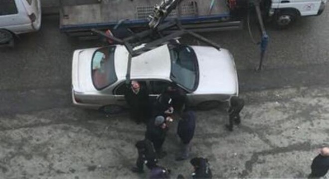 Ankara'da trafik uygulaması yapan polisler, trafik sigortası olmayan aracı parka çekmek isteyince, otomobilin sahibi yaşlı adam, üzerine çıkarak aracının çekilmesini engellemek istedi.