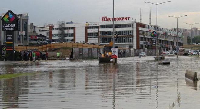 Yaklaşık 15 dakika süren yağış sonrası 1467. Cadde, OSTİM OSB Elektrokent’in çevresi sular altında kaldı. Yoldan geçerken araçları sel sularına gömülen vatandaşlar mahsur kaldı. İhbar üzerine olay yerine gelen itfaiye ekipleri, vatandaşları kurtardıktan sonra araçları sudan çıkardı. Caddeyi göle çeviren suyu tahliye etmek için çalışma başlatıldı. Elektrokent esnafı da sel baskınından nasibini aldı. Baskın sırasında malzemelerini kurtarmak için bodrum katlardaki depolara indiklerini belirten esnaf, aniden bastıran sular nedeniyle boğulma tehlikesi atlattıklarını savundu. Bölgede önlem alınmasını isteyen bir esnaf, “Bir ay içinde ikinci kez su baskınına maruz kaldık. Hiçbir yetkili bizimle ilgilenmedi. Su baskını ile oluşan hasar bir kenara canımızdan oluyorduk” dedi.