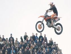 ANKARA / Şahin Tepe MX Parkuru'nda gerçekleştirilen yarışa 73 sporcu katıldı. Motorsporları tutkunlarının ilgiyle takip ettiği yarışları binlerce seyirci izledi. Sporcular, bin 670 metre uzunluğunda ve 18 rampadan oluşan yarışta dereceye girmek için kıyasıya mücadele etti.,ANKARA /