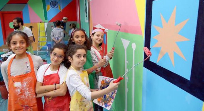 Çankaya Belediyesi ve Goethe Enstitüsü’nün düzenlediği etkinlikte yer alan Hürriyet İlkokulu öğrencileri, tüm duvarları doğaçlama bir çalışmayla rengarenk boyadı.