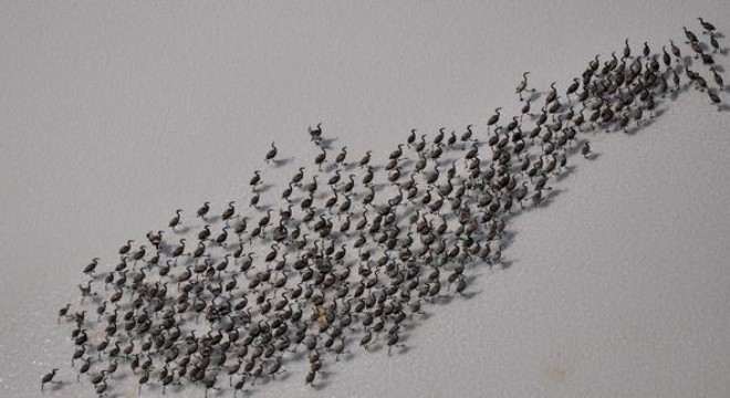 Çevre ve Şehircilik Bakanlığı tarafından koruma altında tutulan flamingoların üremek için geldiği Tuz Gölü'nde, yumurtadan çıkan yavruların tuz örtüsü üzerinde başlayan yürüyüşü eşsiz güzellikte görüntüler sunuyor.