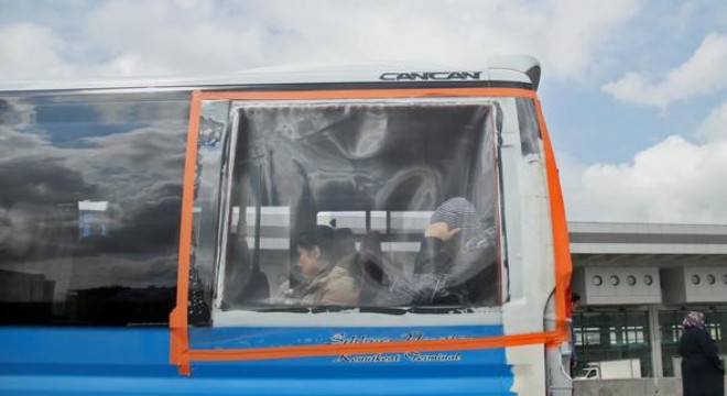 İçinde yolcular bulunan toplu taşıma aracı, Mevlana Bulvarı’nda yolcu alıp indirdiği, saat 11.30 sıralarında Hürriyet Ankara objektifine takıldı. Kırılan camı yerine branda yapıştırılarak seferine devam ettirilen dolmuşu trafikte görenler şaşkınlık yaşadı. Hem trafikteki diğer sürücüler hem de durağa yanaştığı sırada vatandaşlar tarafından uyarılan dolmuş şoförü, can ve mal güvenliği tehlikesine aldırış etmeden yoluna devam etti.