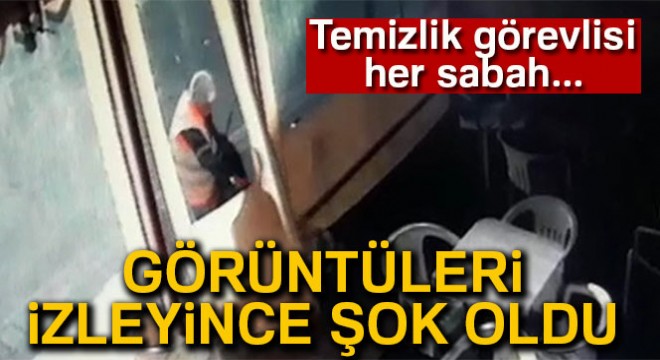 İşyeri sahibi, temizlik görevlisinin küçük poşetleri almasına rağmen büyük poşeti işyerinin kapısından içeri attığını dile getirdi.